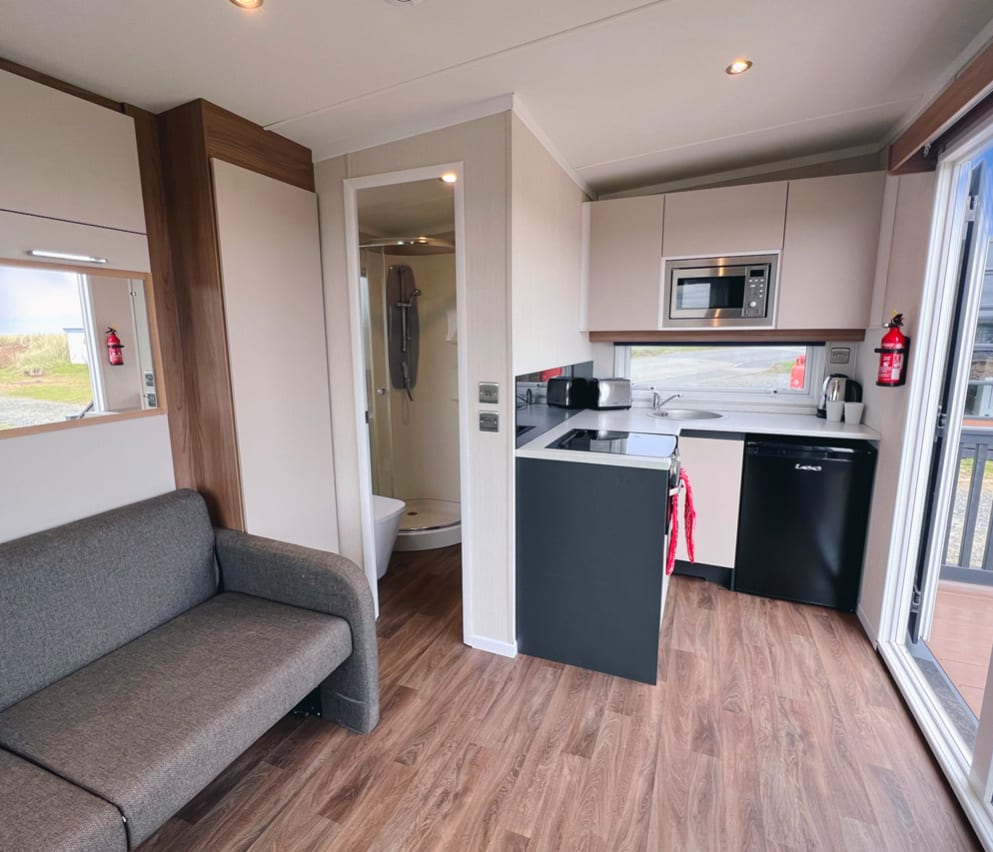 Our Luxury Pods in St Ives Bay offer a level of comfort that surpasses the norm! They feature a fold-out double bed, a small kitchen, a toilet, and a shower so you can chill out and enjoy your stay.